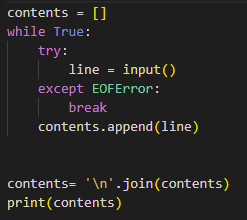 Now I need to get my script to read the highlighted code Understand is sending in. By default, the input command only reads one line of text. I’m sure there’s a better way, but I’m relatively new at Python. This loop seems to do the trick: