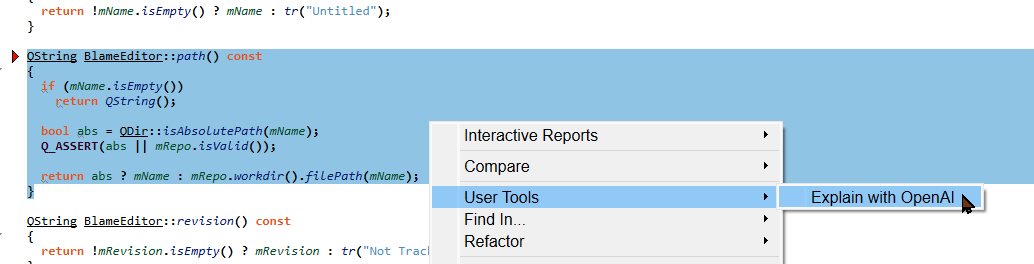 We eat lunch together as a company, and we’ve been talking a lot about AI lately. Yesterday ChatGPT came up in the discussion, and someone mentioned it had the ability to describe what your code was doing. So I decided to add that functionality to my installation of Understand. Since Understand was designed as a platform more than an IDE, it was pretty easy. Here’s how I did it. (If you don’t care about my journey of discovery and just want the script, you can get it here.)