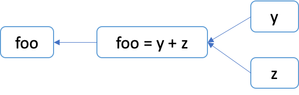 I’ll write a graph plugin for it. My graph plugin will have a node with the source code for each set reference. Then, I’ll add edges for each entity on the right hand side of that reference that feed into my source code node. So, I’ll end up with something like this: