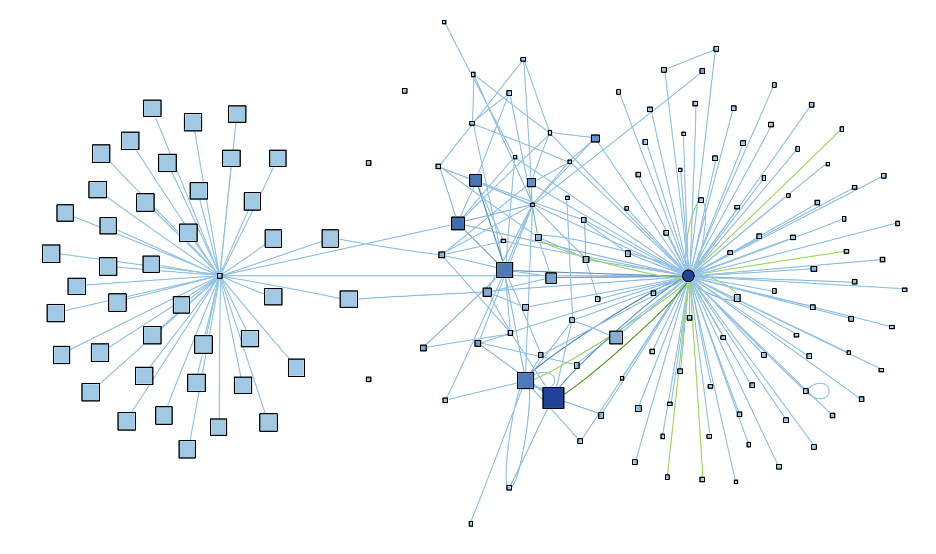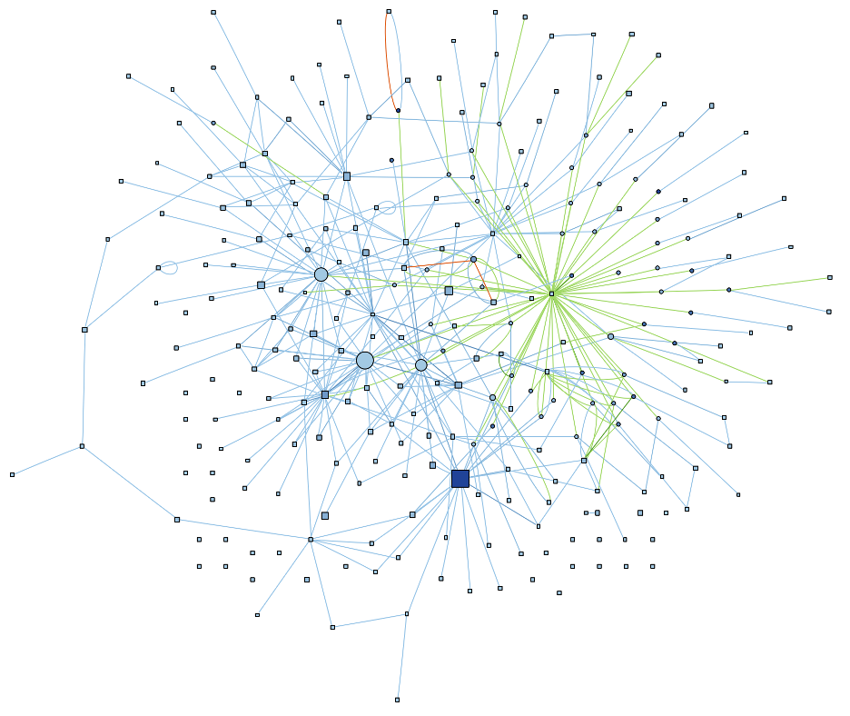 By lines of code and cyclomatic complexity, the big blue square in the bottom center seems like the most important function (EnableLanguage). However, the center of all those green edges on the right is also a function (cmGlobalGenerator), not a variable. So it seems like nearly every change to this class’s data goes through cmGlobalGenerator. If I had to understand what this class is doing, I’d probably want to pay attention to both EnableLanguage and cmGlobalGenerator, as well as some of the large objects just left of the center.