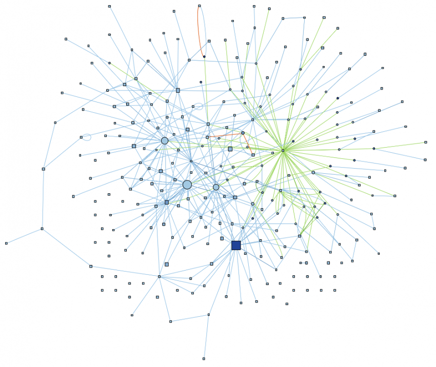 By lines of code and cyclomatic complexity, the big blue square in the bottom center seems like the most important function (EnableLanguage). However, the center of all those green edges on the right is also a function (cmGlobalGenerator), not a variable. So it seems like nearly every change to this class’s data goes through cmGlobalGenerator. If I had to understand what this class is doing, I’d probably want to pay attention to both EnableLanguage and cmGlobalGenerator, as well as some of the large objects just left of the center.